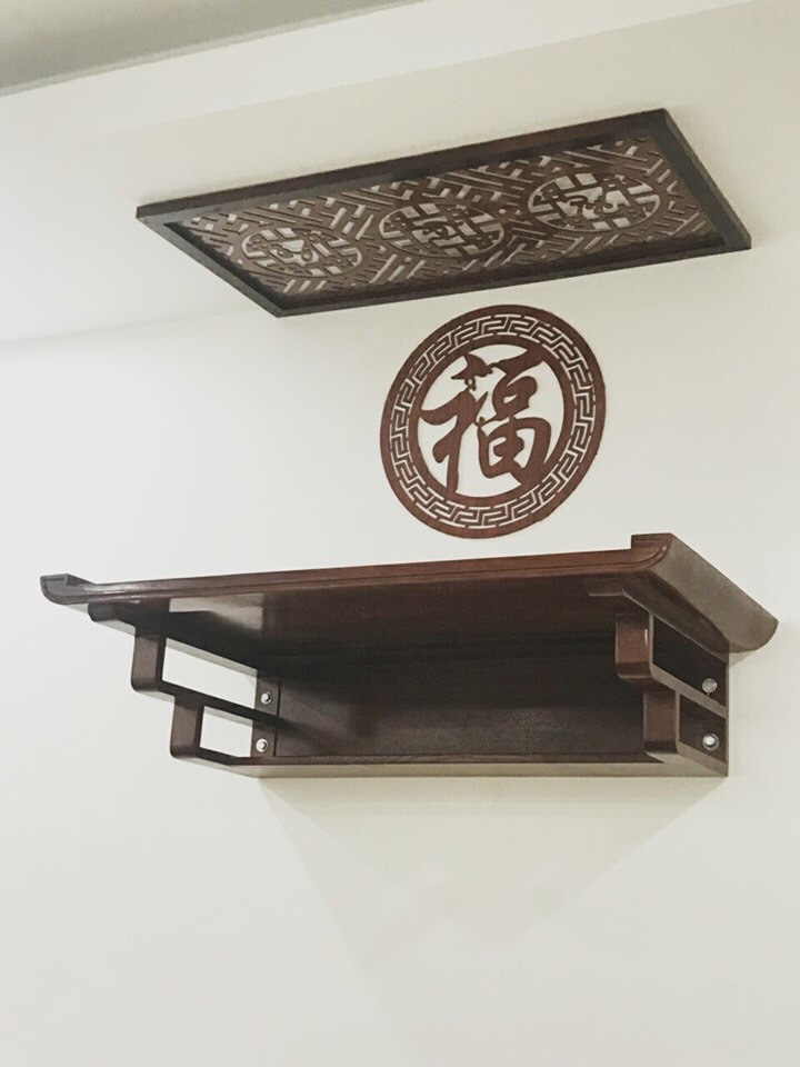 Được thiết kế với kích thước ban thờ gắn tường tương đối rộng. Phù hợp với việc bài trí 3 bát hương cùng số lượng đồ lễ tương đối.