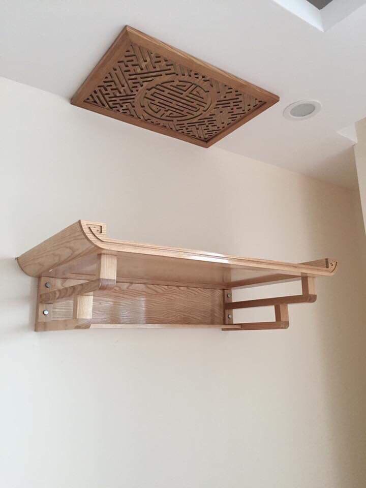 Bàn Thờ Treo Tường chuyên sản xuất bàn thờ treo tường sử dụng chất liệu 100% thành phần gỗ tự nhiên, độ bền cao, không bén gỗ rác và được sơn cẩn thận.