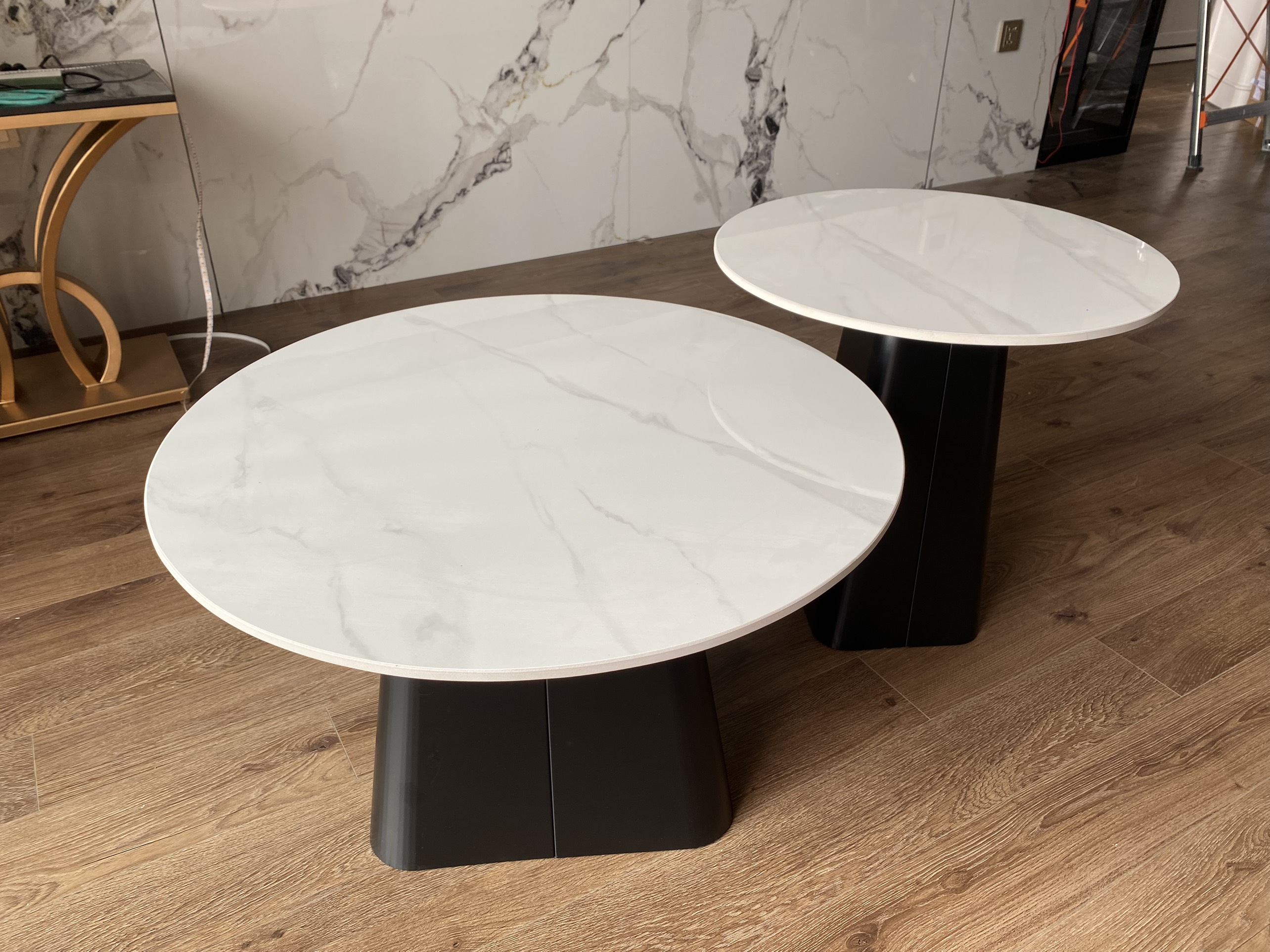 Bàn trà đôi mặt đá chân săt sơn tĩnh điện - BTD02