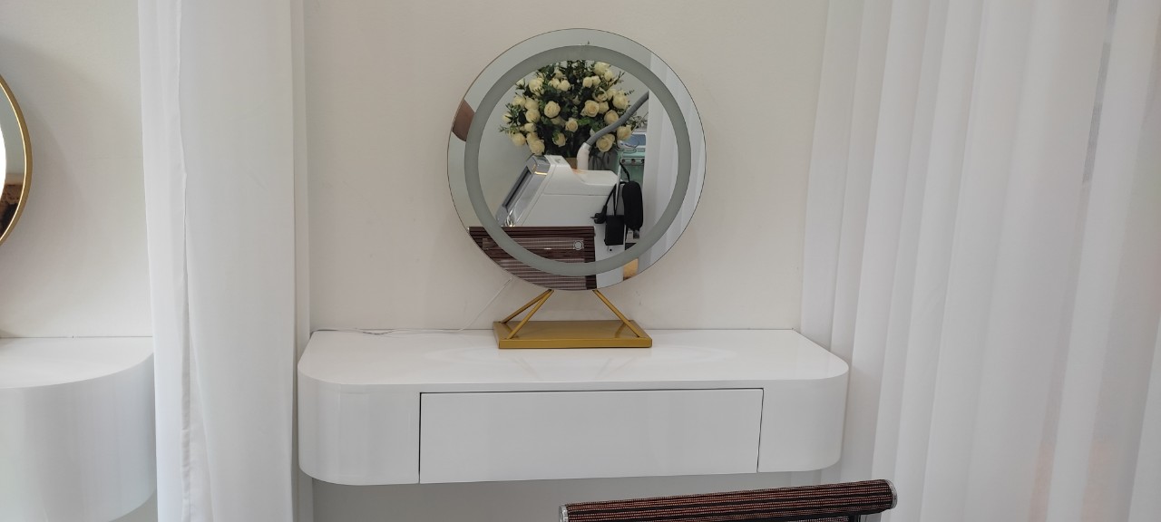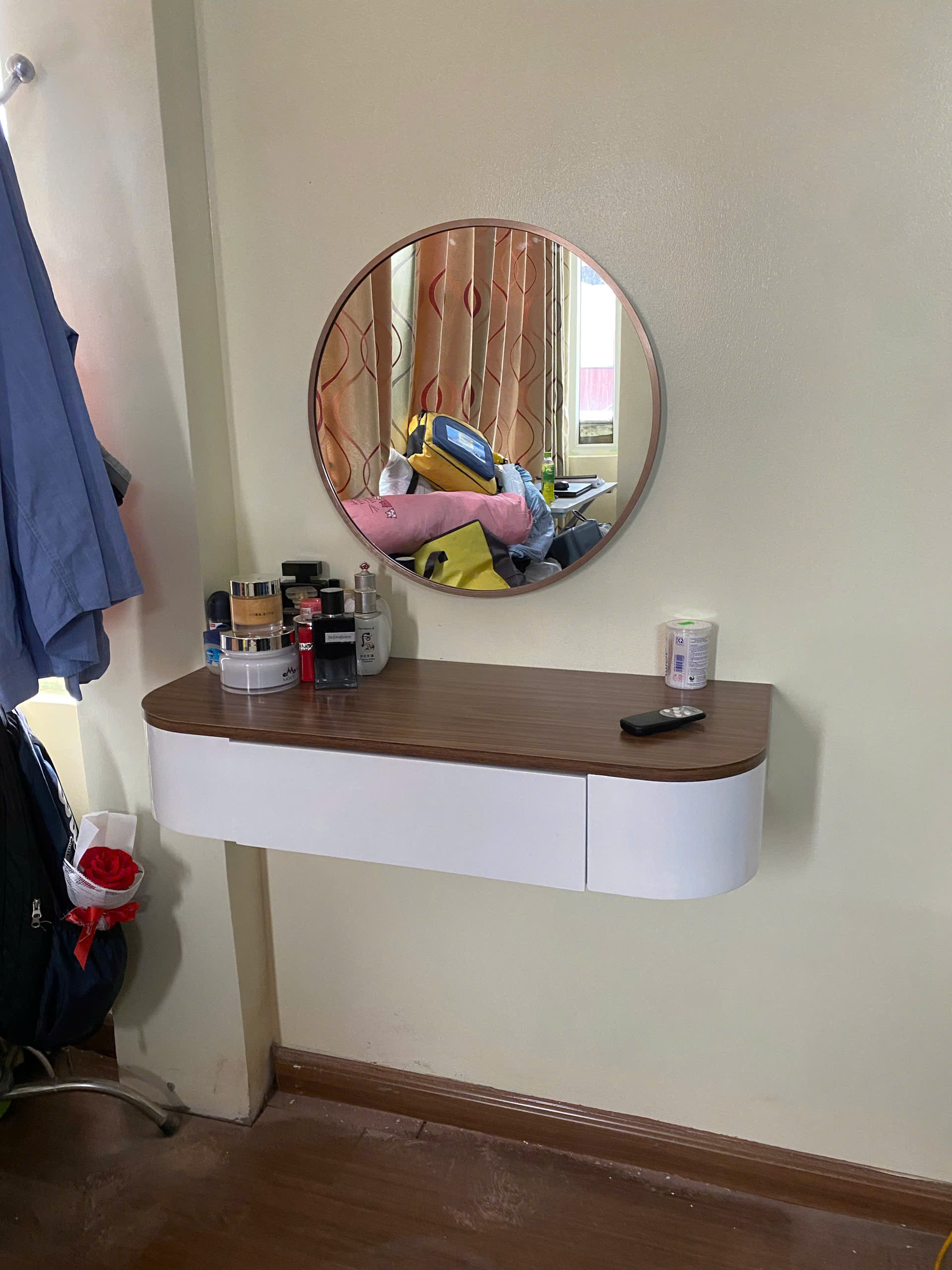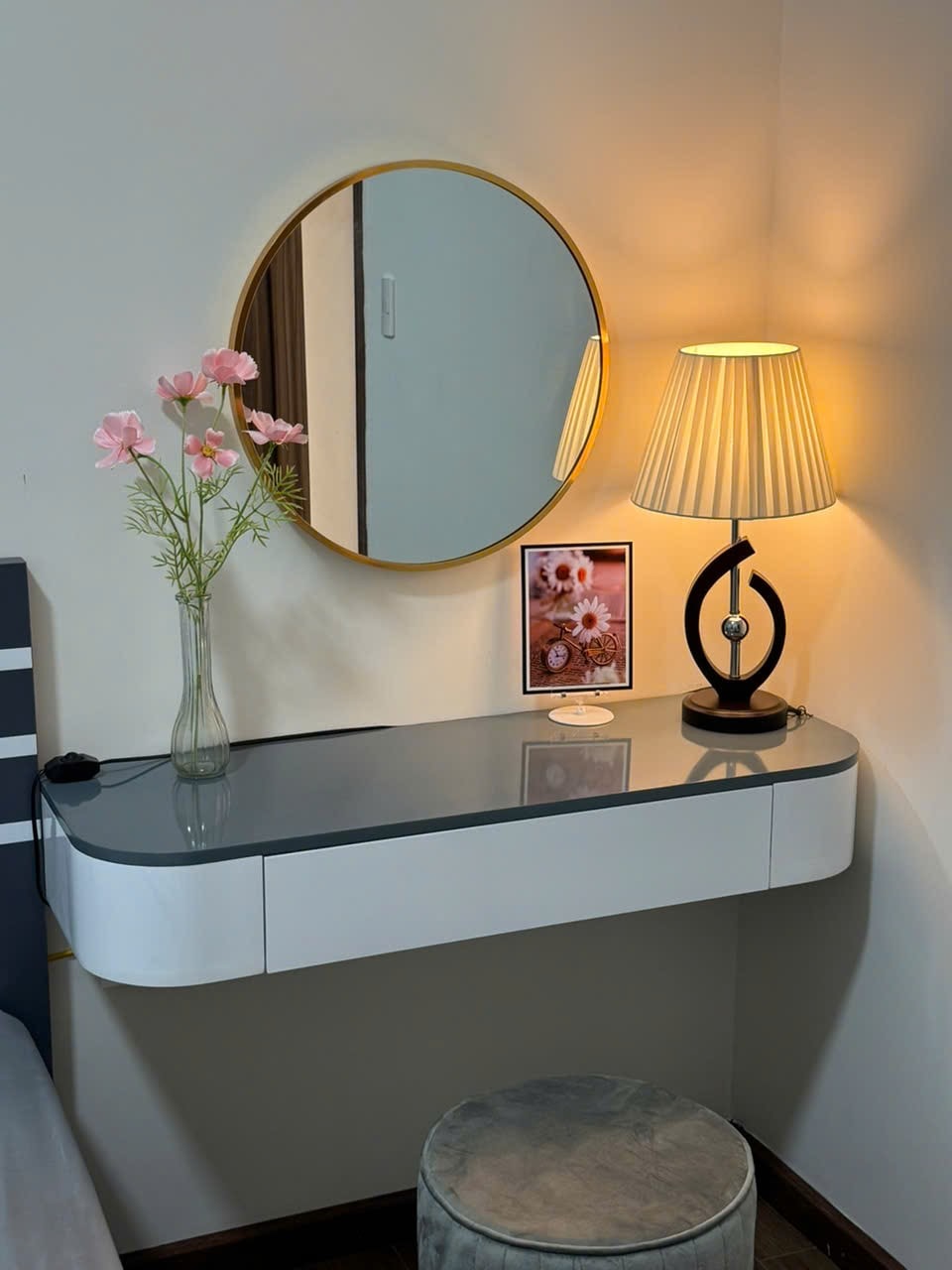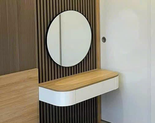 Mẫu bàn trang điểm treo tường bo góc cong xu hướng thiết kế mới