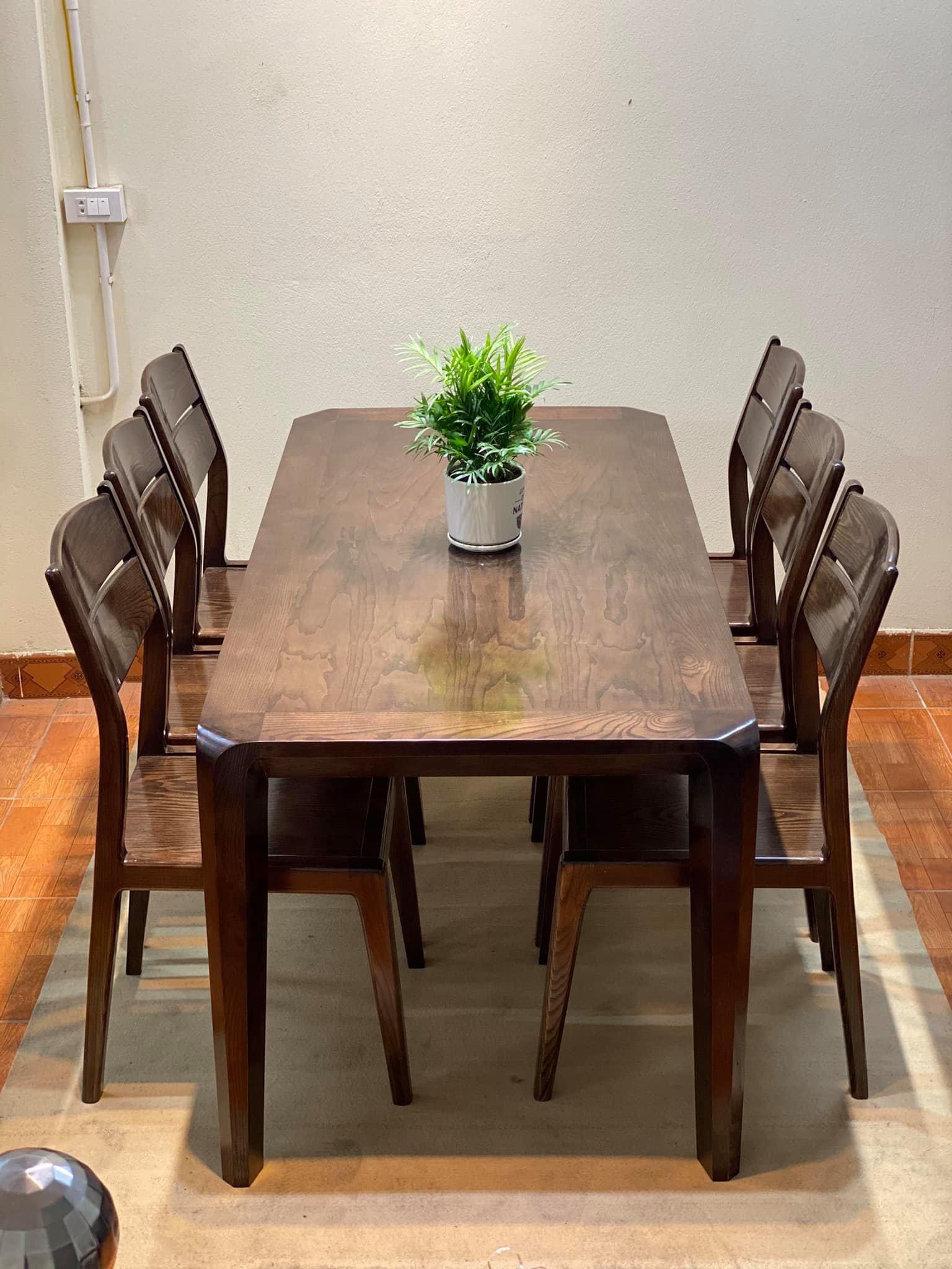 Bàn có kích thước 160x80cmGhế Vega 3 lá có thiết kế tương đối đơn giản và truyền thống.