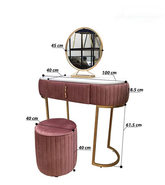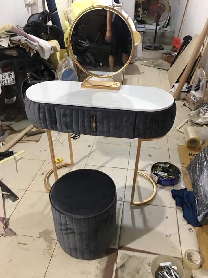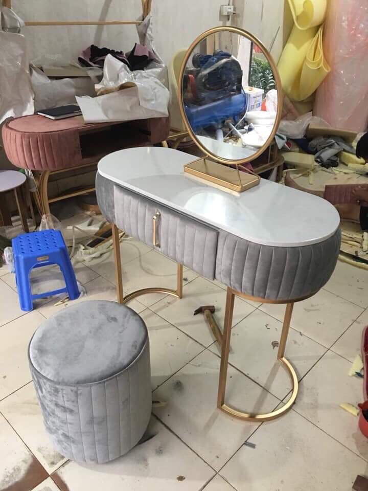 Bộ ba món Bàn Ghế Trang Điểm bọc nhung kèm gương soi