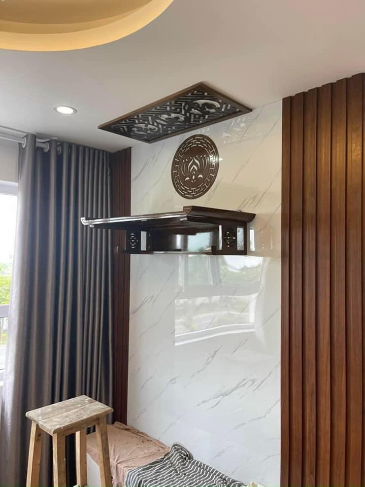 Bàn thờ treo tường to đẹp, hiện đại thiết kế theo phong cách hiện đại dành cho những căn hộ chung cư cao cấp. Không có những đường nét chạm khắc quá mức cầu kỳ như các mẫu bàn thờ cổ truyền, bàn thờ hợp phong thủy được khắc họa với những đường nét hết sức đơn giản, nhưng cũng không kém phần tinh tế và bắt mắt. Điểm nhấn nổi bật nhất của mẫu bàn thờ treo tường chung cư này là những họa tiết viền đơn giản được khắc ở chính diện của bàn thờ. Đây là hình ảnh mang ý nghĩa tâm linh vô cùng sâu sắc tạo nên không gian thờ cúng thiêng liêng cũng không kém phần gần gũi.