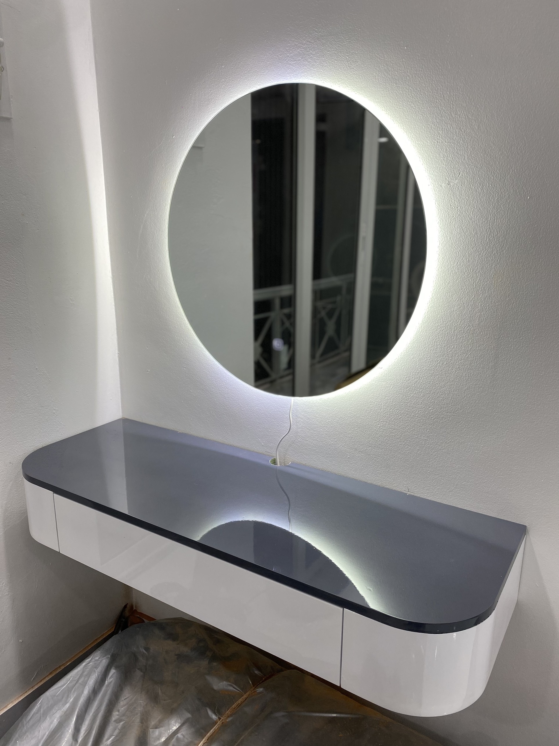 + Bàn trang điểm Dài 80cm rộng 35 cao 15cm, Gương Led D60cm: 1750k