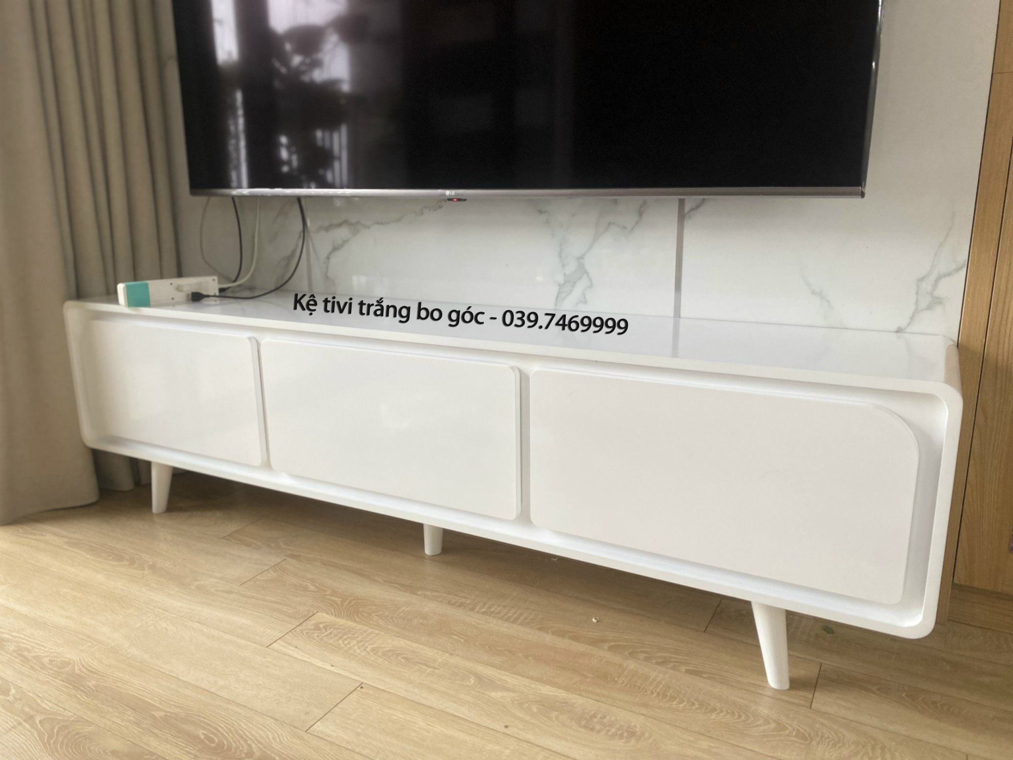 Kệ tivi đặt sàn màu trắng bo góc hiện đại -TV211