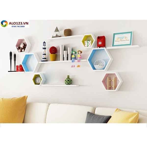 + Kệ gồm 6 ô lục giác 2 light như hình