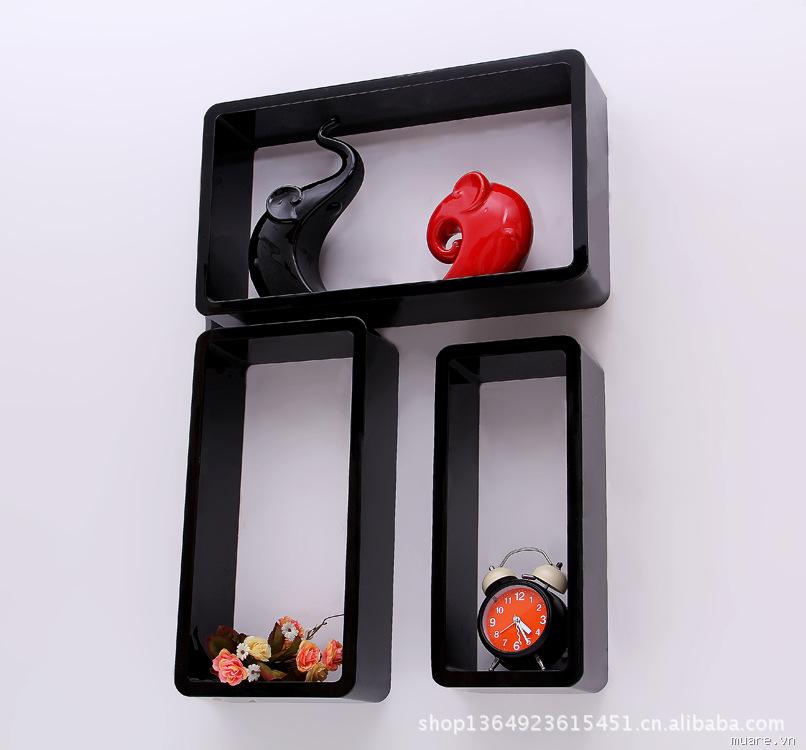 Kệ gỗ trang trí treo tường bộ chữ nhật lồng, kệ trang trí, kệ gỗ trang trí: ( 03 ô/ bộ)