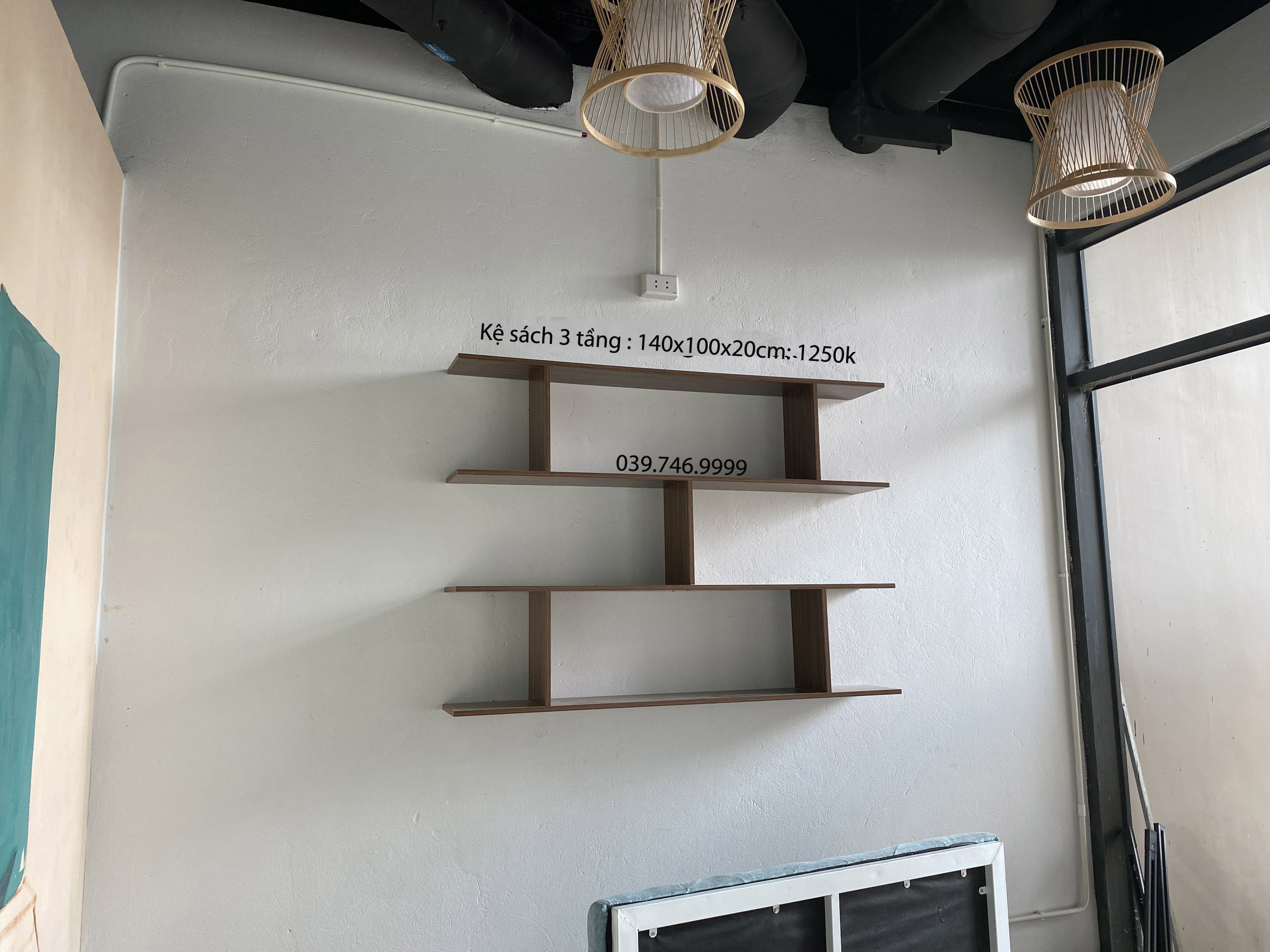 Kệ sách có kích thước dài 140 cao 100 rộng 20cm