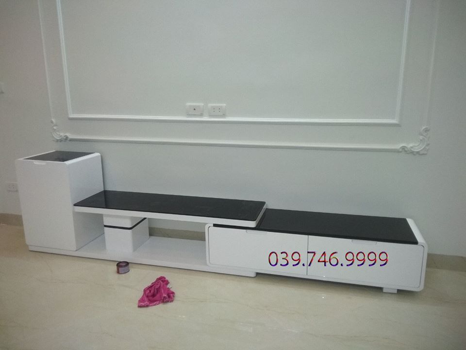 Hệ kệ tivi mặt kính cuờng lực dai từ 180 kéo ra 240cm rộng 35 cao 35cm