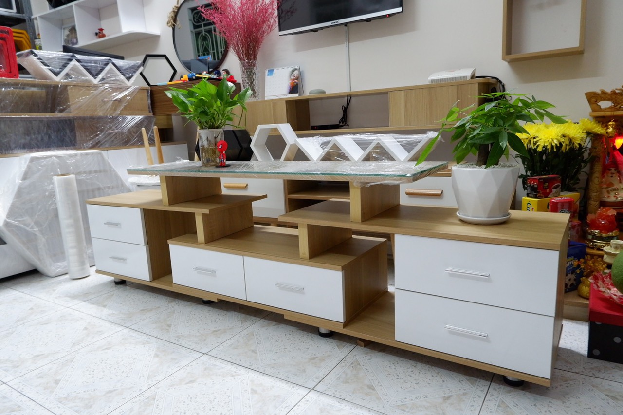 Hướng dẫn dùng: Kệ tivi Gỗ 3 Modul, 4 ngăn kéo có thể tùy chỉnh kích thước, chân inox lót cao su cách đất…