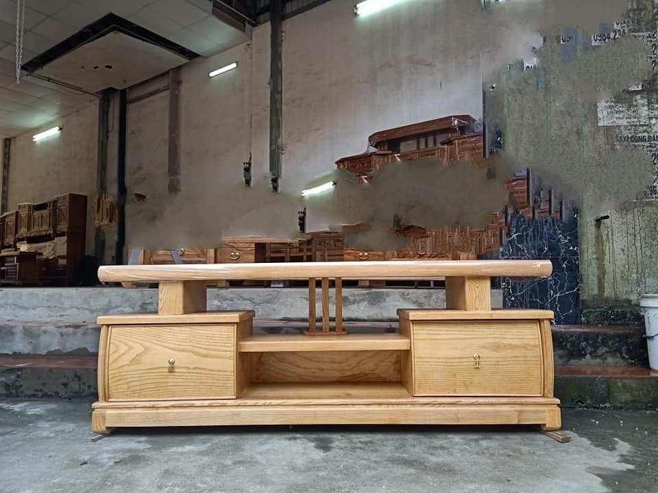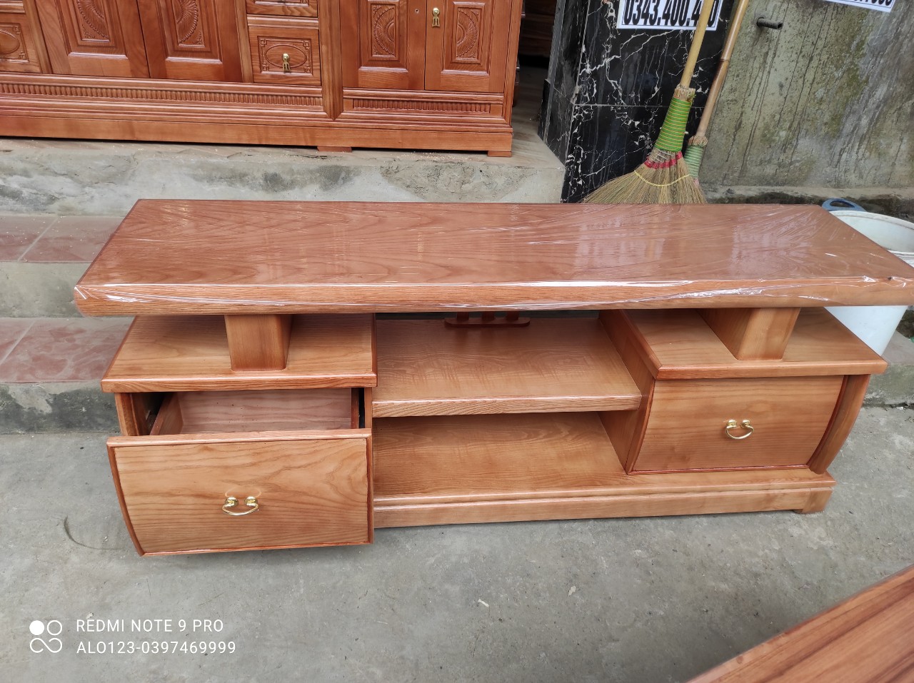 - Kệ tivi gỗ thịt M2 được làm từ gỗ Tần bì, sơn màu óc chó hoặc màu cam như nảh
