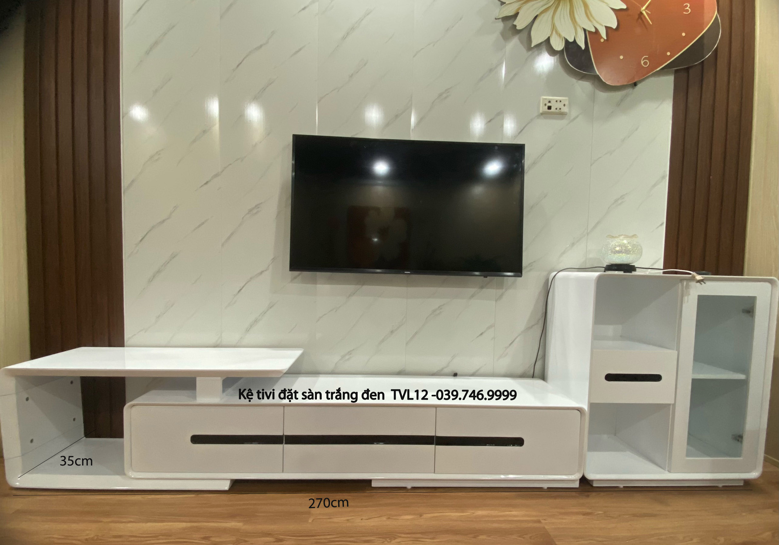 Kê tivi đặt sàn trắng TVL12 có thể thay đổi kích thước theo diện tích nhà