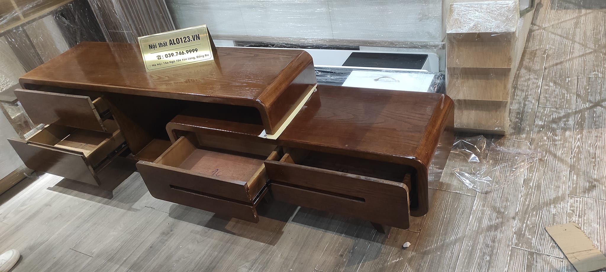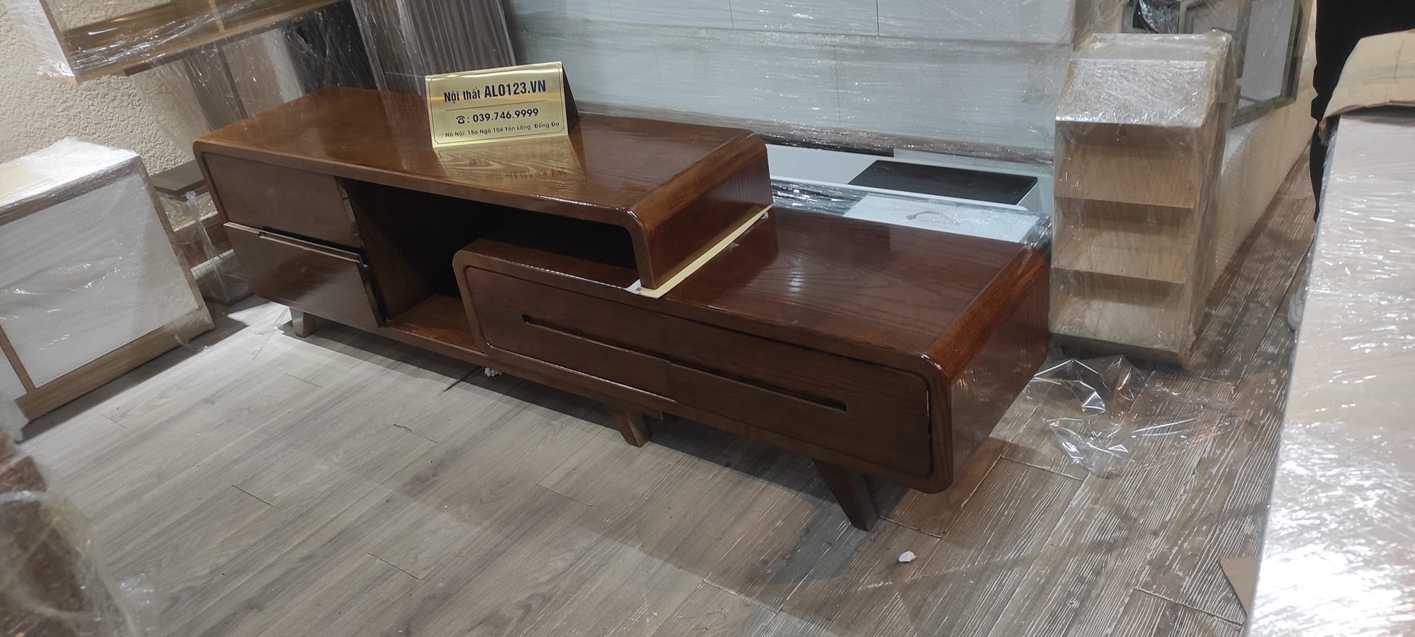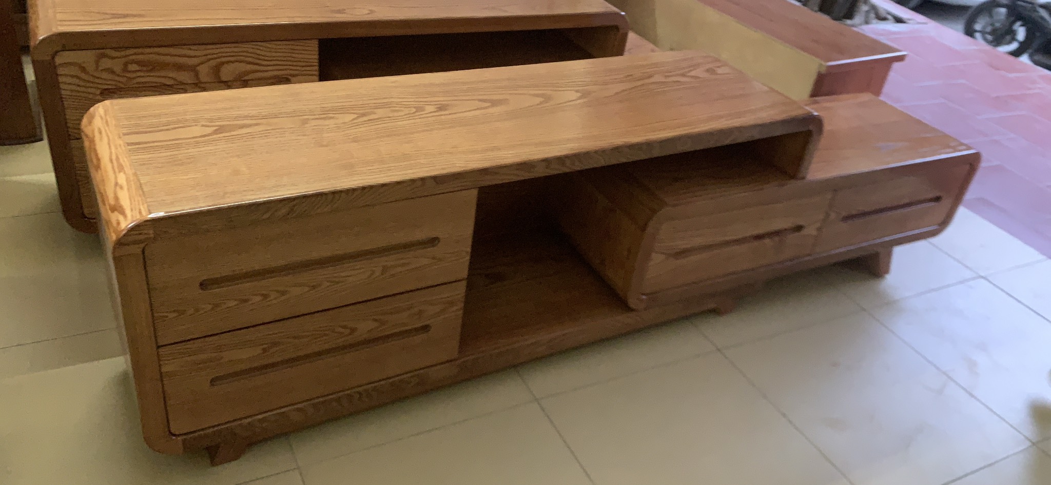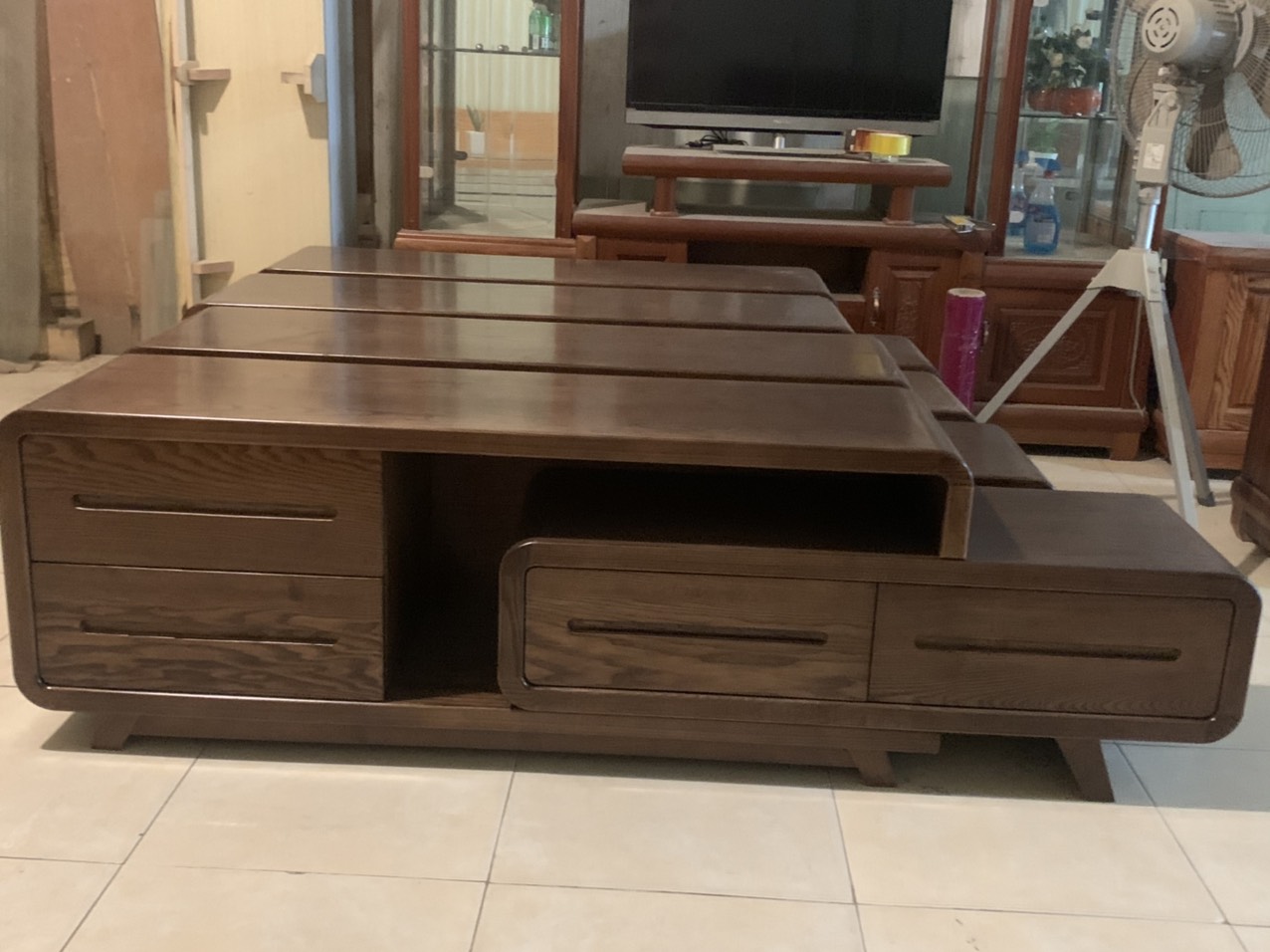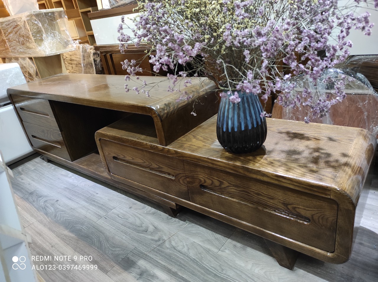 Kệ tivi gỗ tự nhiên có thể thu gọn kéo ra kéo vào theo kích thuớc