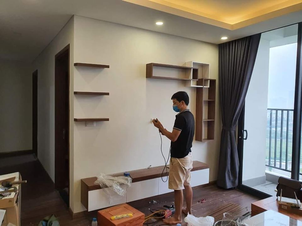 Kệ tivi treo tường 3 ngăn kéo Màu vân gỗ kết hợp thanh ngang tạo lên điểm nhấn phòng khách mới lạ