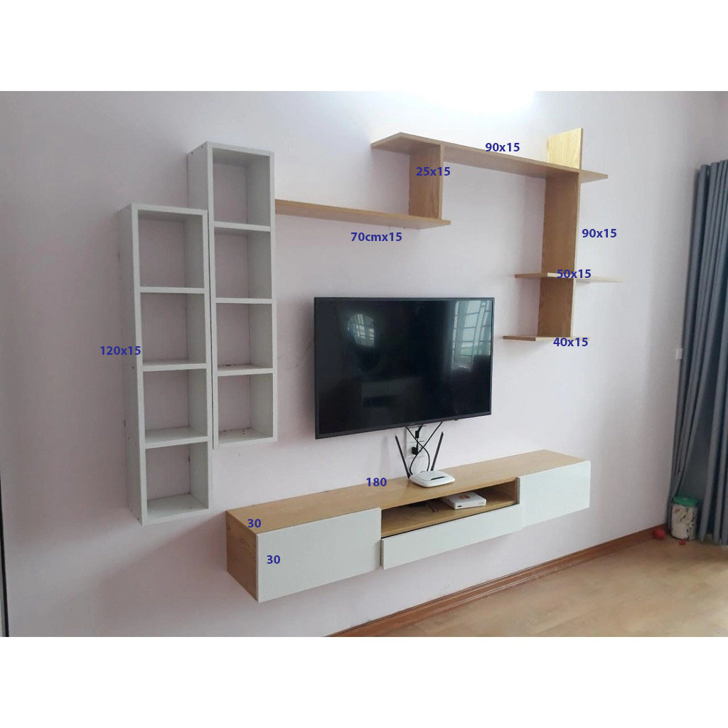 Trong mỗi bộ kệ gỗ treo tường của đều có sẵn ốc vít nở (tắc kê). Mọi thứ đã có đủ chúng ta tiến hành xác định vị trí