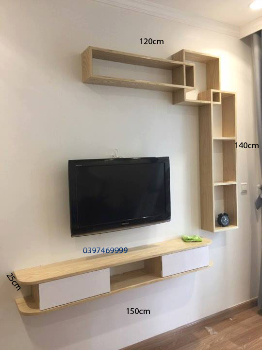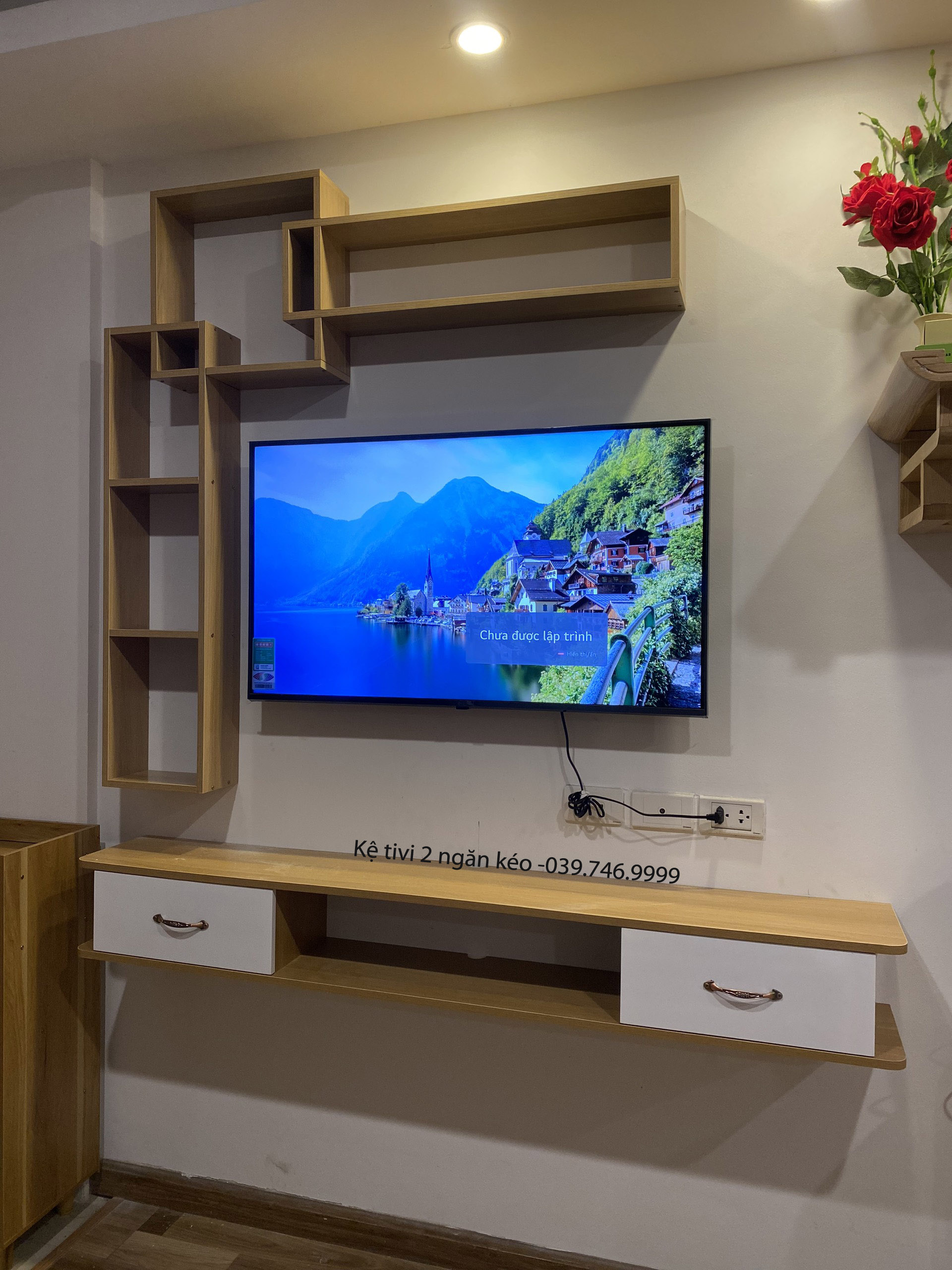 Sét Kệ tivi 2 ngăn kéo + Hệ zic zac treo tường màu sồi hiện đại