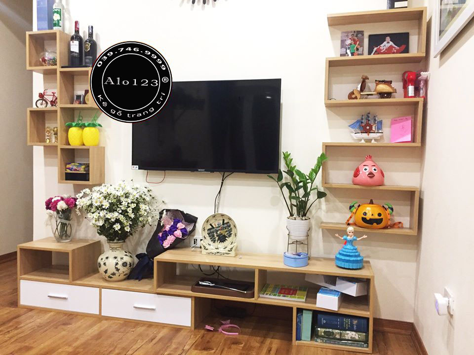 Bạn có thể bố trí tranh và các đồ trang trí quanh kệ tivi . Hãy nhìn hệ kệ tivi bên dưới, trông nó thật đẹp phải không nào. Mảng tường chính của phòng khách không đơn thuần để xem tivi nữa mà còn là nơi trang trí và điểm nhấn cho cả căn phòng. Kệ tivi này hoàn toàn phù hợp với phong cách nội thất hiện đại.