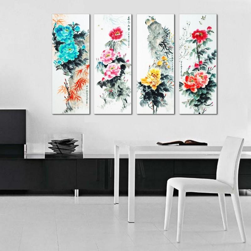 Tranh bộ 4 bức hoa Mẫu Đơn DH2077A (kích thước 120x80cm)