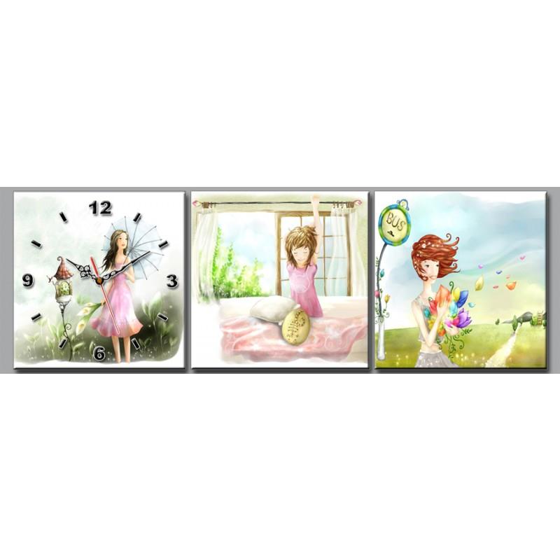 Tranh đồng hồ 3 tấm hoạt hình DH393A (kích thước 90x30cm)
