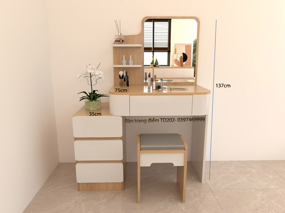 Nội thất ALO123 giới thiệu cả nhà Mẫu Bàn Trang Điểm Kèm Ghế Và Gương Dây da treo tường hiện đại