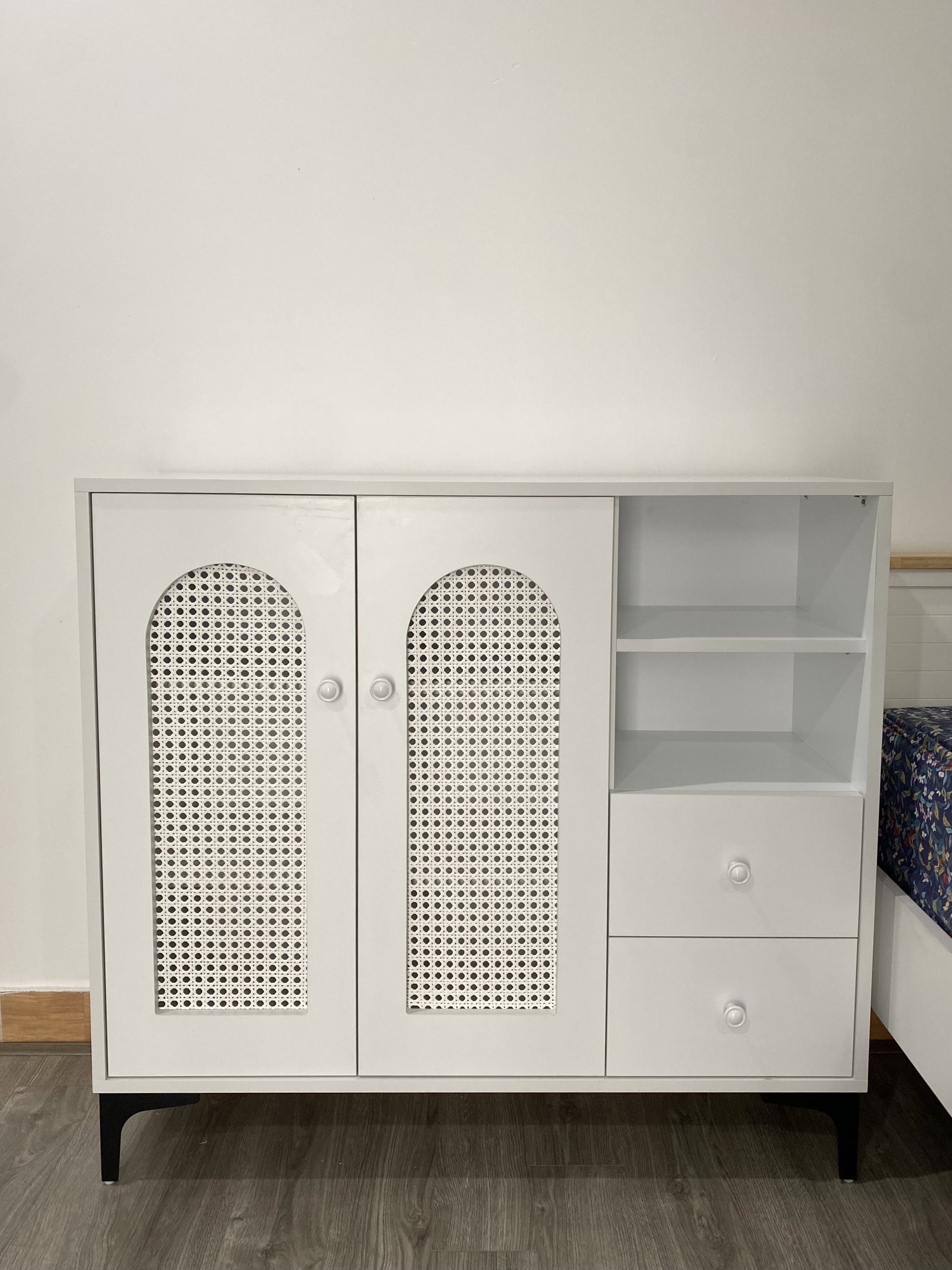 Tủ có thể thiêt kế được sử dụng nhiều công năng làm kệ tivi, để đồ cho bé, để đồ decor